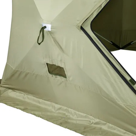 Баня-палатка Следопыт может использоваться как в качестве походной бани, так и в качестве палатки. Благодаря автоматическому механизму быстро переводится из транспортировочного положения в рабочее — установка занимает всего несколько минут. В нижней части предусмотрена наружная юбка для защиты от продувания. Оснащение палатки: • выход под дымоход на крыше; • вентиляционное отверстие с антимоскитной сеткой; • два съёмных окна со шторками, обеспечивающих дополнительное освещение и вентиляцию; • внутренние карманы для хранения мелочей. Каркас выполнен из прочного стеклопластикового (фибергласс) прутка диаметром 10 мм. Материал - ткань Oxford 240D PU1000 Размеры - 215х215205 см КОМПЛЕКТАЦИЯ: • палатка-баня • сумка-чехол • колышки - 8 шт. • шнур для растяжки - 3 м, 4 шт. • крючки - 2 шт. • съемные окна из прозрачной ПВХ пленки - 2 шт.