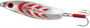 SYCLOPS — одна из лучших колеблющихся блесен в мире, имеющая превосходно отработанную форму. Старинные прототипы, схожие с этой блесной, в наше время практически не сохранились. SYCLOPS унаследовал от них двойной прогиб в горизонтальной проекции, обеспечивающий при проводке максимальное сходство с движениями живой рыбы. Блесна не имеет мягкого профиля, ее форма образована сопряжением плоскостей, в том числе, образующих в хвостовой части «ребро устойчивости», гарантирующее SYCLOPS устойчивую, без «свалов», игру как на спокойной воде, так и при любой скорости течения. Благодаря идеально расположенному центру тяжести и удачному соотношению между весом и площадью приманки, все размеры SYCLOPS сохраняют превосходную игру даже при свободном падении после прекращения проводки. Как известно при ловле лосося и щуки такой приём бывает незаменим. Кроме того, эффект от движения блесны значительно усиливается за счет игры света, отражаемого плоскостями.