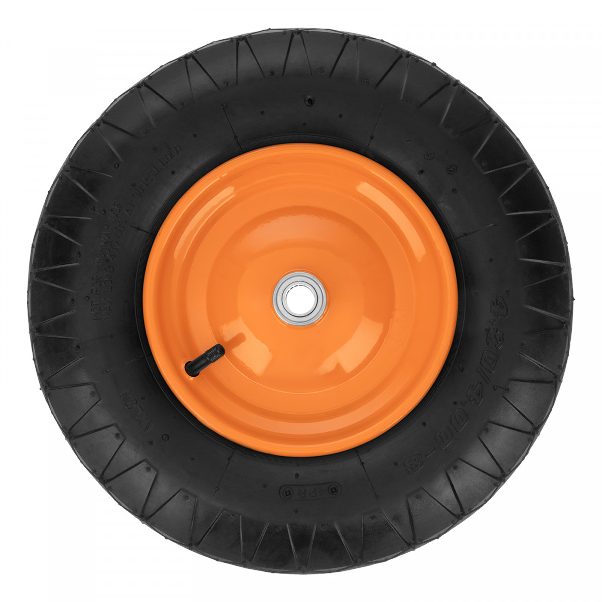Пневматическое колесо 4.80/4.00-8 Palisad 68957 диаметром 390 мм, с длиной оси 80 мм и внутренним диаметром подшипника 20 мм, предназначено для перевозки грузов с помощью тачки. Подходит к тачке Сибртех 68936. Колесо с шариковыми подшипниками обеспечивает высокую проходимость и рассчитано на ежедневное использование на ровном или рыхлом грунте.