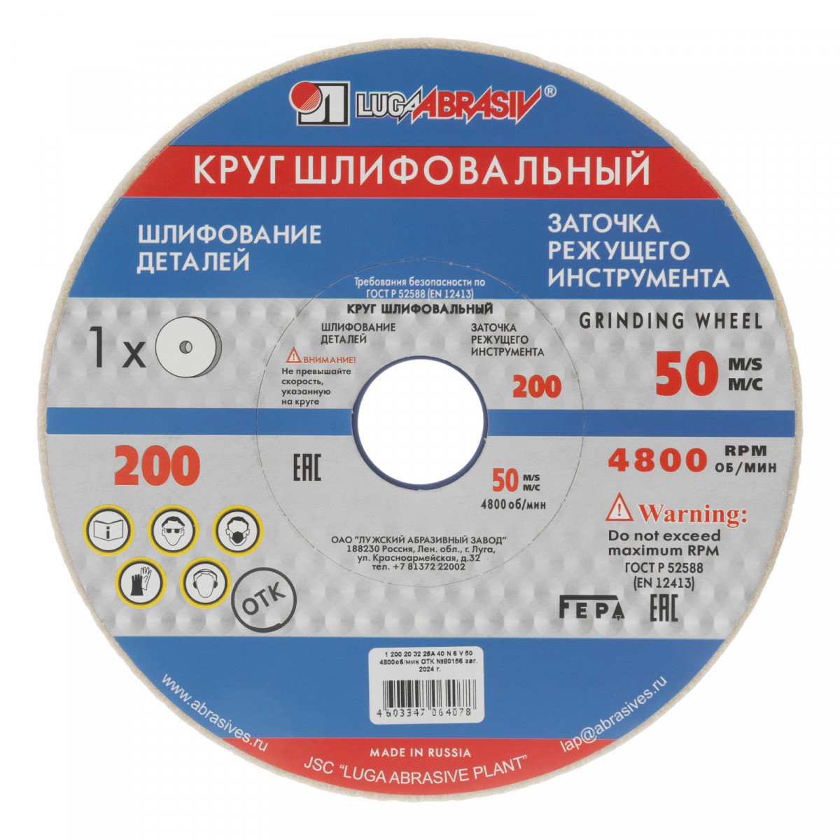 Шлифовальный круг Луга 73467, 200 х 20 х 32 мм, 25 A, с зернистостью F40 и твердостью M, устанавливается на электроточила с посадочным диаметром 32 мм и применяется для плоского шлифования поверхностей из закаленных углеродистых, быстрорежущих и нержавеющих сталей, а также для обработки мелких деталей — сверл, зубьев, ножей, резцов. Подходит для заточки режущих инструментов. Абразивным материалом является белый электрокорунд, зерна которого эффективно справляются с обработкой твердых материалов.