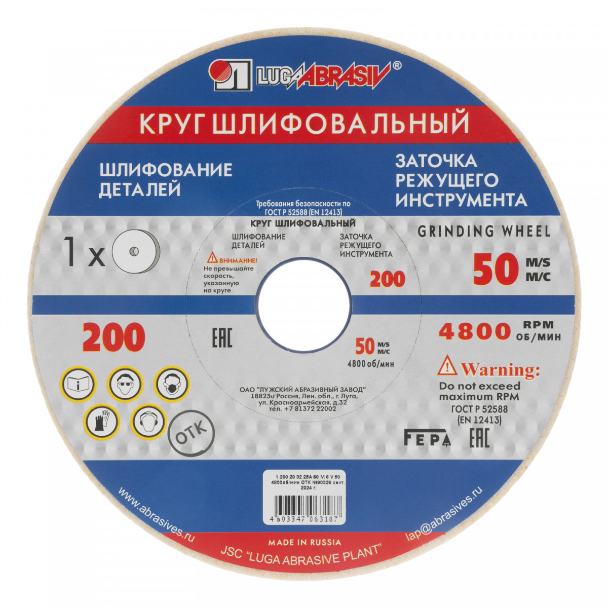 Круг шлифовальный, 200 х 20 х 32 мм, 25А, F60, (М, N) "Луга"