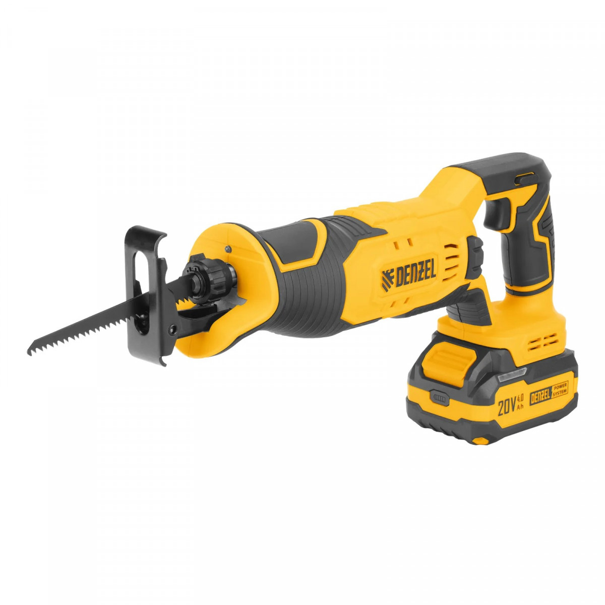 Аккумуляторная сабельная пила поставляется с аккумулятором Li-Ion 20 В емкостью 4 А·ч и предназначена для распиливания заготовок из древесины, металла и других материалов.
