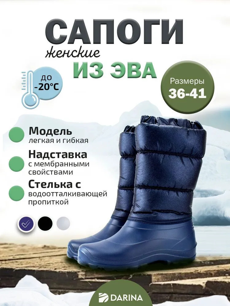 Сапоги зимние женские из ЭВА с комбинированным верхом синий Дарина Д426