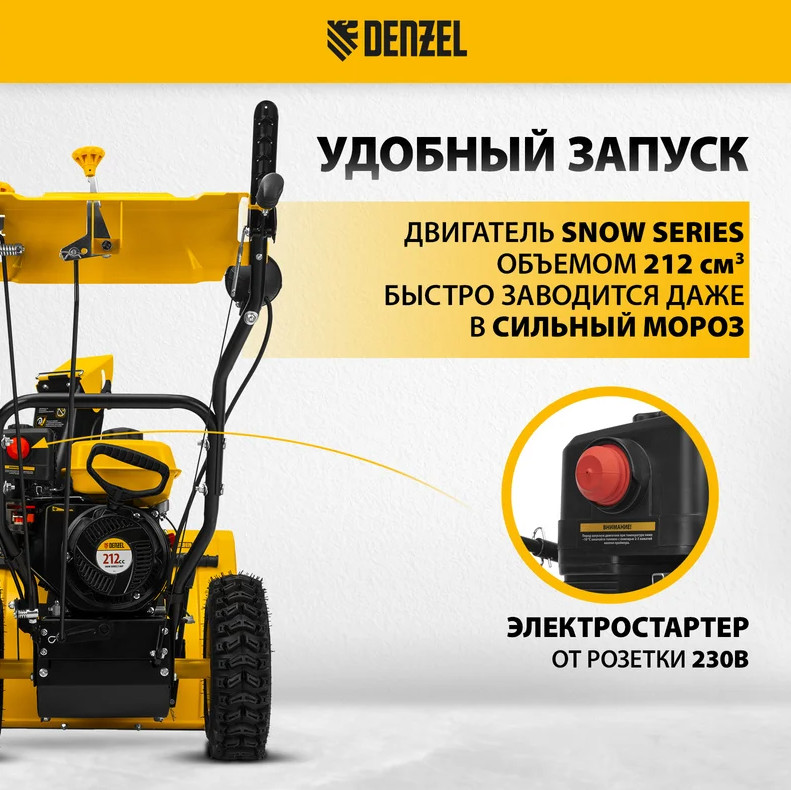 - Срезные болты в комплекте — c каждым двухступенчатым снегоуборщиком Denzel клиент получает 10 запасных срезных болтов на шнек, чтобы обеспечить бесперебойную работу техники