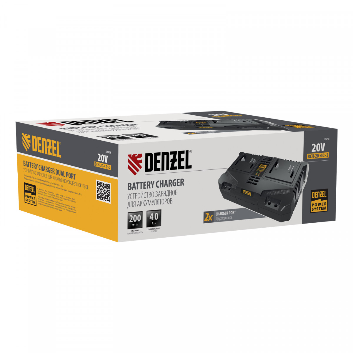 Устройство зарядное для аккумуляторов двухпортовое BCH-20-4.0x2, Li-Ion, 20 В, 4.0 А Denzel