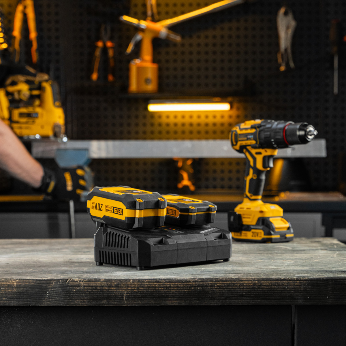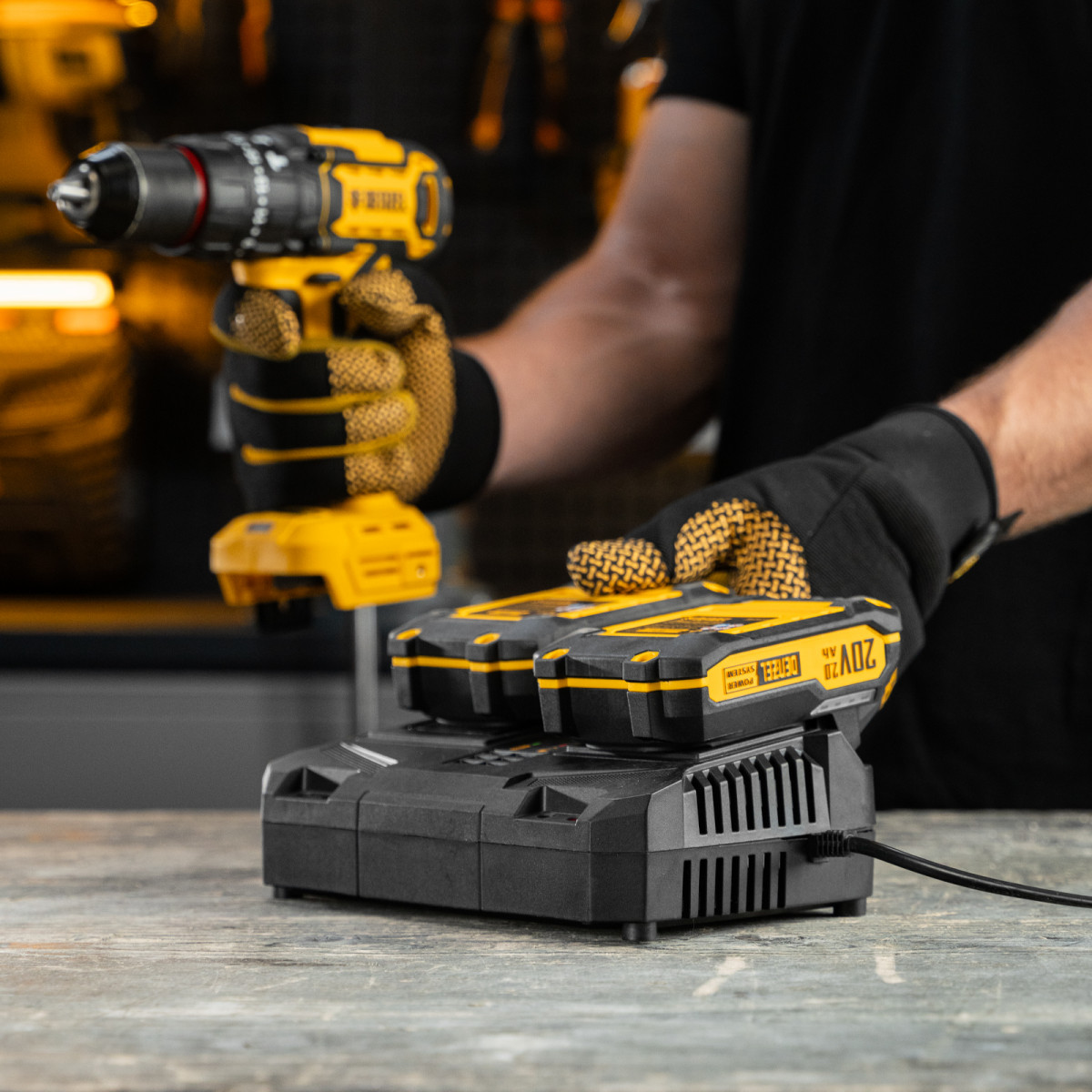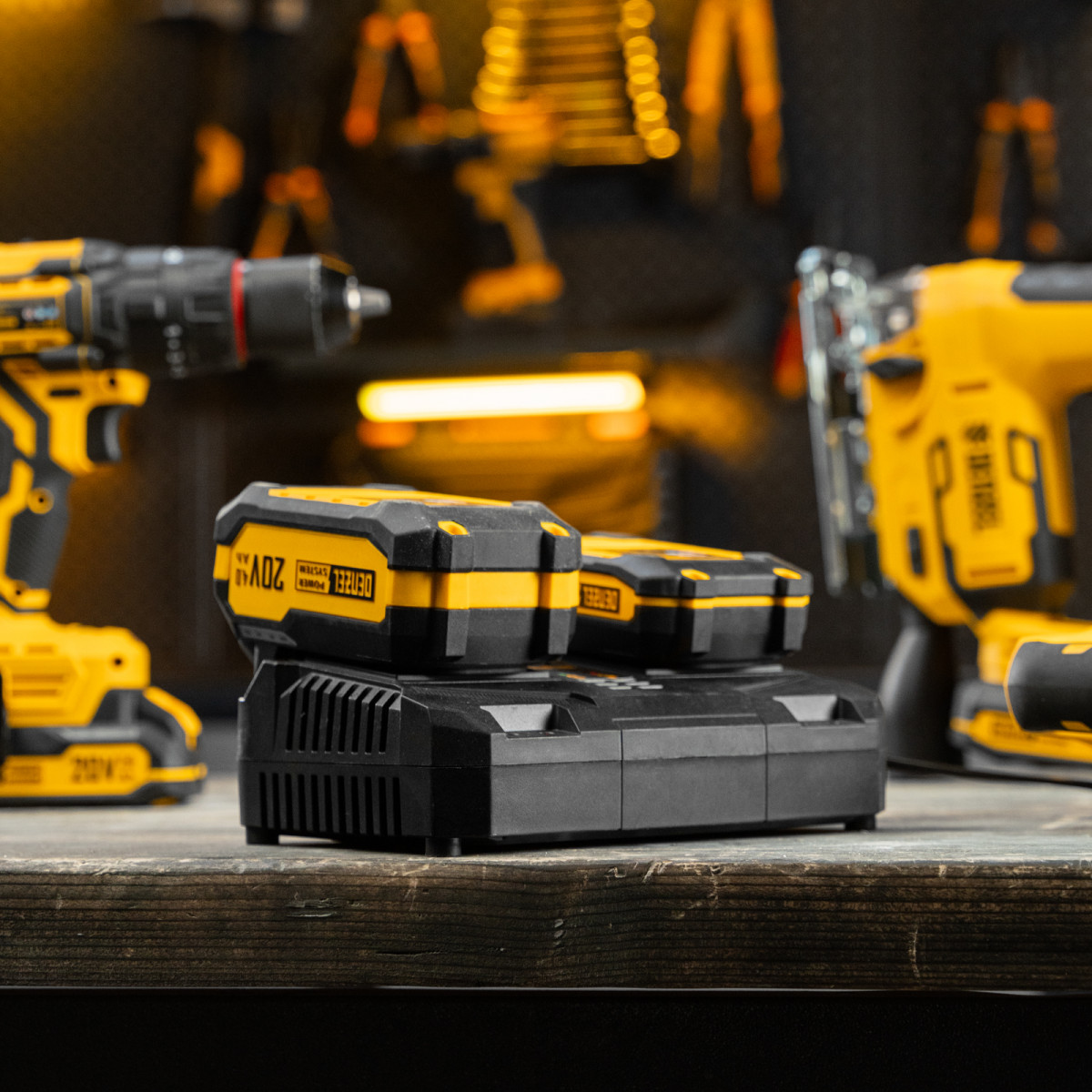 Двухпортовое зарядное устройство Denzel BCH-20-4.0x2 28458 предназначено для одновременной зарядки двух аккумуляторов единой платформы Denzel Power System 20 V. Обеспечивает ток заряда 4 A, совместимо с аккумуляторами Denzel 28442, 28444 и 28446.