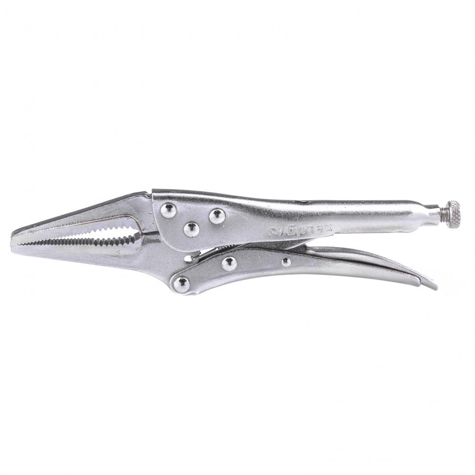 Зажим ручной Сибртех 18424 с удлиненным захватом, 220 мм, используется для проведения слесарных, столярных, монтажных, сварочных работ. Он удерживает разные по форме заготовки и детали, при этом руки мастера остаются свободными для дальнейших действий. Удлиненный захват обеспечивает надежную фиксацию. Инструмент пригодится на строительной площадке, во время ремонта, а также дома, в мастерской или гараже.